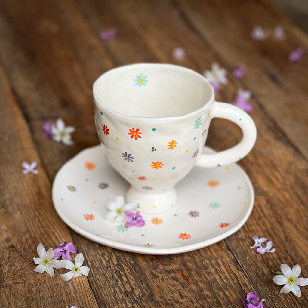 Toks pasakiškas žydėjimo metas! Akimis norisi rinkti visus žiedus ir maudytis jų kvapnume! O pažvelgus į save stebėtojo akimis – juoktis! Juoktis iš nesupratimo, kaip šis žiedelis turi tokią didelę galią?! Galią įžiebti džiaugsmo šypsenas. Iš didelio noro užkonservuoti žydėjimą ir jo svaiginantį jausmą, išpiešiau puodelius gėlytėmis, ryškiomis kaip vasara. Tegul bent taip žydėjimo festivalis tęsiasi visais metų laikais. Jau įsivaizduoju, kaip skanu ir jauku bus rudenį guršnoti iš šio puodelio, vasarą rinktų žolynų arbatas.
