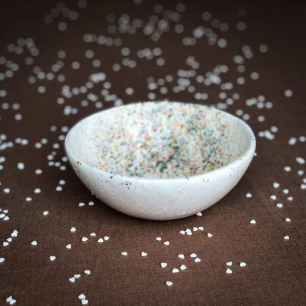 Dimensions of the work – diameter at the top ~ 15 cm, height ~ 6 cm, capacity ~ 500 ml, weight ~ 200 g.